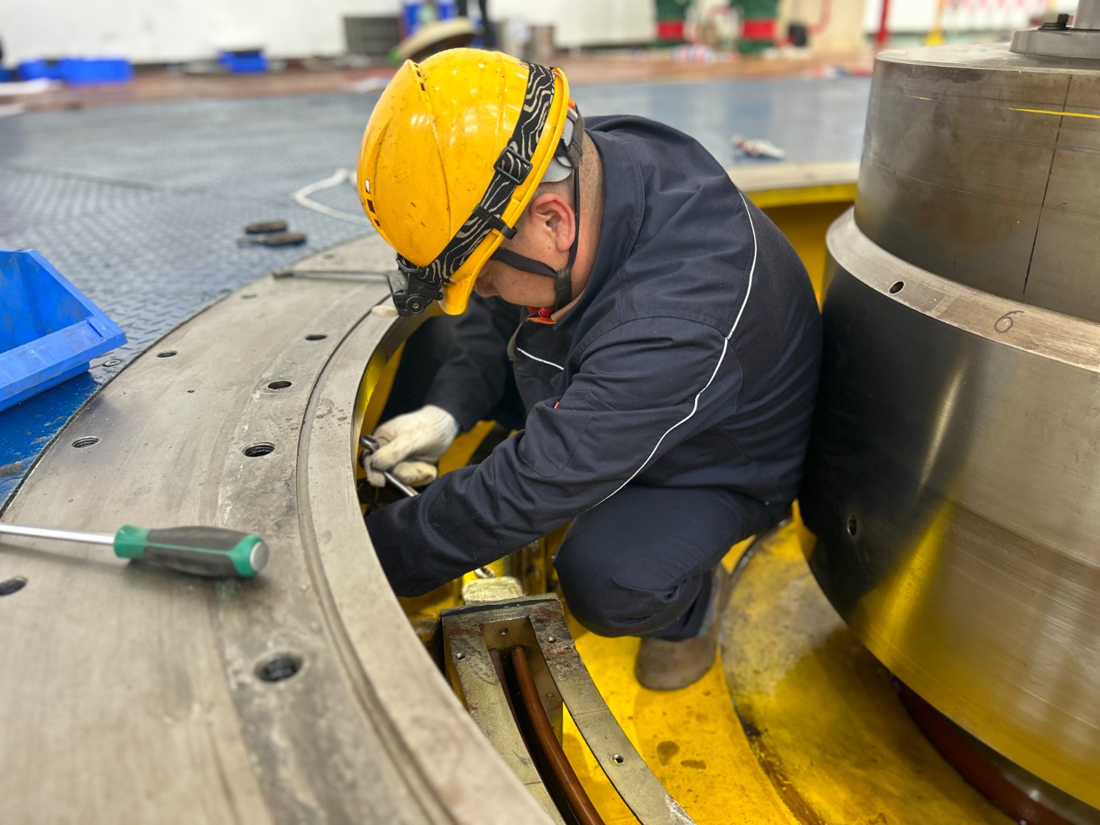 自11月19日檢修工作啟動(dòng)以來(lái),電廠檢修團(tuán)隊(duì)秉持“應(yīng)修必修、修必修好”的核心原則,以“標(biāo)準(zhǔn)化、精細(xì)化”為作業(yè)導(dǎo)向,對(duì)2號(hào)水輪發(fā)電機(jī)組及輔助設(shè)備開(kāi)展全面檢查、清理、試驗(yàn)與缺陷消除工作。檢修過(guò)程中,團(tuán)隊(duì)強(qiáng)化作業(yè)前風(fēng)險(xiǎn)分析與預(yù)控,嚴(yán)格執(zhí)行日計(jì)劃管控、“兩票”制度及“三講一落實(shí)”要求,堅(jiān)決杜絕“三違”行為;嚴(yán)格遵循公司標(biāo)準(zhǔn)化檢修規(guī)范,提前編制并細(xì)化執(zhí)行《檢修作業(yè)指導(dǎo)書(shū)》,通過(guò)三級(jí)驗(yàn)收機(jī)制對(duì)各工序、各環(huán)節(jié)實(shí)施全流程質(zhì)量管控,確保檢修工作安全、優(yōu)質(zhì)、高效推進(jìn)。