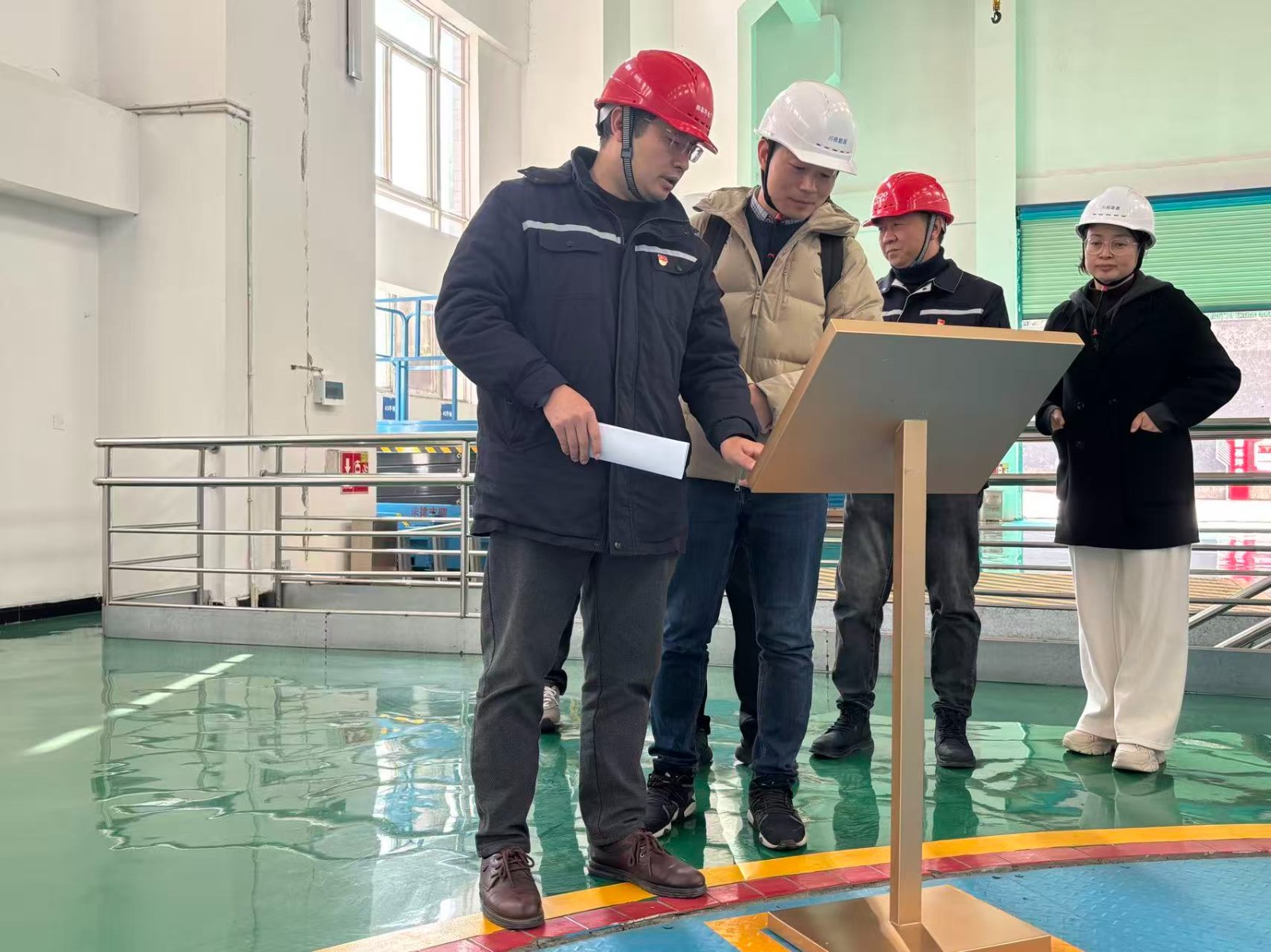 教師們深入生產一線,先后參觀了電廠主廠房、中央控制室等核心區域。趙兵詳細講解了機組運行管理、安全管理體系以及電廠在智慧化轉型方面的創新實踐。隨后參觀了腳基坪電廠“紅色能源小站”和“企地共建示范基地”,深刻感悟了長征精神與兩路精神的時代價值,了解了腳基坪電廠在“黨建引領企地共建”特色黨建引領下,服務地方經濟發展、助力鄉村振興、賦能企業發展的生動實踐。
